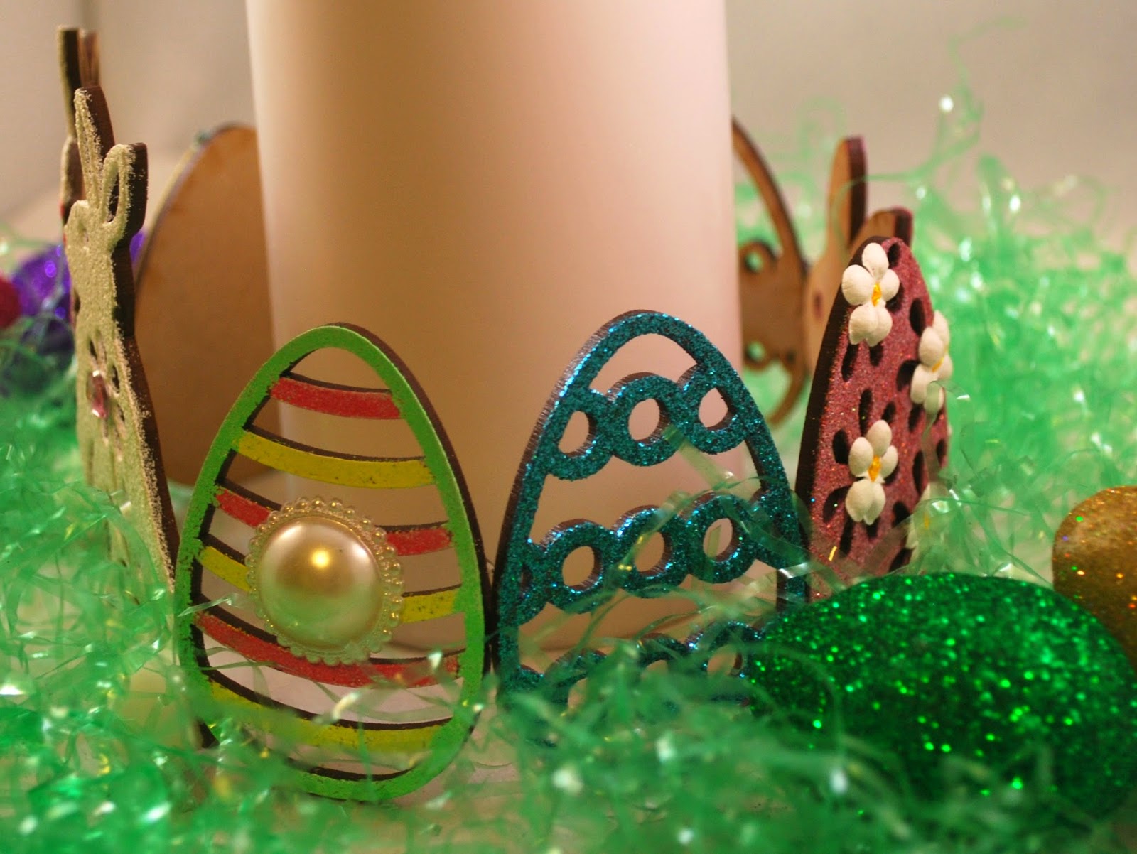 I am super excited to bring you my first project as an official member of the Unique Laser Designs Design Team. And boy oh boy do I have a fun project for you. How about an adorable candle ring with lots of bunnies and Easter eggs.